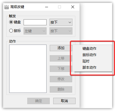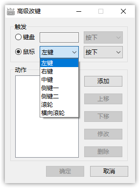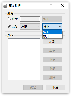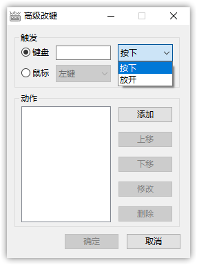 在这里,有“触发”和“动作”两个区域。这两个概念比较贴近改键的底层技术本质: