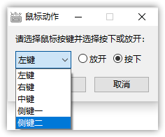 鼠标支持左键、右键、中键、滚轮、横向滚轮、两个侧键的按下和放开:(暂不支持滚轮滚动触发)