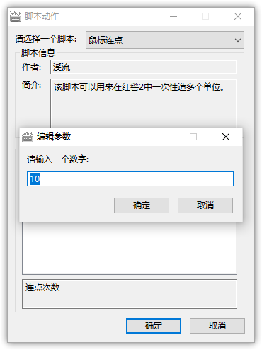 我们选择的“鼠标连点”脚本有个叫“Count”的参数,选中该参数,下面会显示参数的描述,如图中“连点次数”
